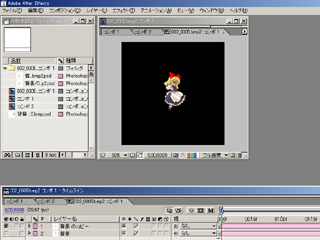 見ればすぐに分かるかと思いますが、レイヤーサイズ読み込みの場合と、ドキュメントサイズ読み込みの場合で、エフェクトがかかる範囲が変わっているため、ドキュメントサイズのもののほうが自然に見えると思います。 まぁ、こう言う時のためのドキュメントサイズ読み込みというところですね。 こういった処理をする際のドキュメント自体の大きさを出力画面の大きさにあわせておくことも忘れずに。(出力画面以下だとレイヤーサイズの例のようになります) <<豆知識>>レイヤーで読み込んで、ドキュメントのサイズにしたい場合は、ドキュメントサイズの新規レイヤーを作成して、そのレイヤーごとプリコンポジション化(CTRL+SHIFT+C)した後、プリコンポその物にエフェクトをかけると、ドキュメント読み込みの物と同じようにエフェクトをかけられます。 |
