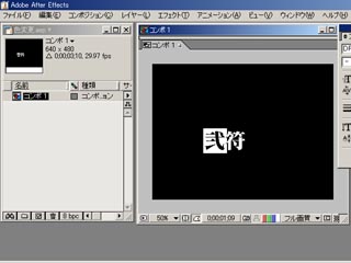 まずは文字の変更や色の変更ですね。 最初にレイヤー→テキストで壱符と入れ、キーフレームを頭に打っておきます。 その後、1秒後にソーステキストの追加キーフレームでキーを追加して ツールの→で範囲を指定、上の絵のようになるようにして弐と打ち込み 弐符に変わるようにします。 ツール キーフレーム |