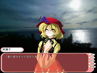 ストーリーモードはいつもどうりのADVゲーム風です移動画面。幻想郷にある幾つかの建物で準備を整えよう。